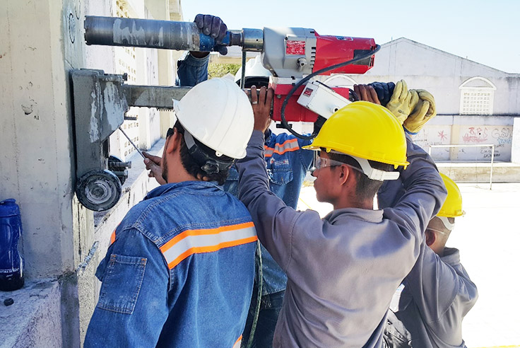 Extracción de núcleos de concreto en el antiguo Coliseo de la Institución Educativa Distrital Liceo Celedón de Santa Marta